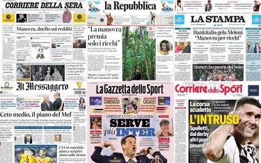 - "Ceto medio, il piano del Mef" è il titolo d'apertura. Giorgetti: "In Manovra 3.4 miliardi per le famiglie". Bankitalia: "Sostenere il potere d'acquisto". Magistratura, carriere separate, Nordio vede Schlein: "Non mettiamo i pm sotto al governo". Sanità: "L'IA in ospedale aiuta a scoprire abusi sulle donne". Calcio: "In Scozia risorge la Roma europea".