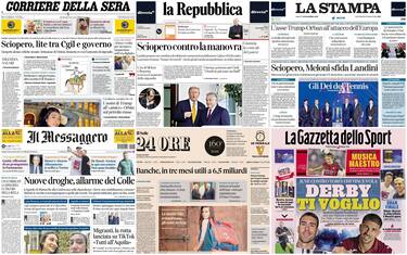 - Arriva il "weekend lungo" post Immacolata per Landini. Secondo il Giornale, il segretario della Cgil "blocca l'Italia con lo sciopero generale sulla Manovra indetto per venerdì 12 dicembre. È il 66esimo da settembre". Il ministro dell'Istruzione Valditara dice stop ai comizi nelle scuole: le parole d'ordine sono "pluralismo" e "spirito critico". Con una circolare, si decreta nelle scuole italiane la fine dei dibattiti e degli incontri orientati in una sola direzione