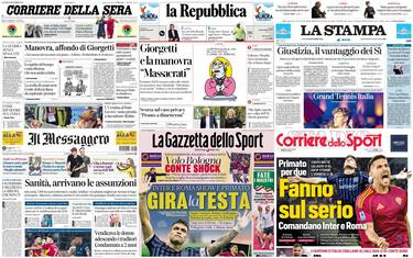 Manovra in primo piano sulle aperture dei giornali in edicola, con l'affondo di Giorgetti che risponde alle critiche di opposizione, Bankitalia e Istat: "Noi massacrati, ma nel giusto". Spazio anche al referendum sulla Giustizia e alle nuove assunzioni nella Sanità. Per gli esteri in evidenza il terremoto alla Bbc e l'Ucraina al buio, mentre sugli sportivi domina la nuova coppia al comando del campionato, formata da Inter e Roma