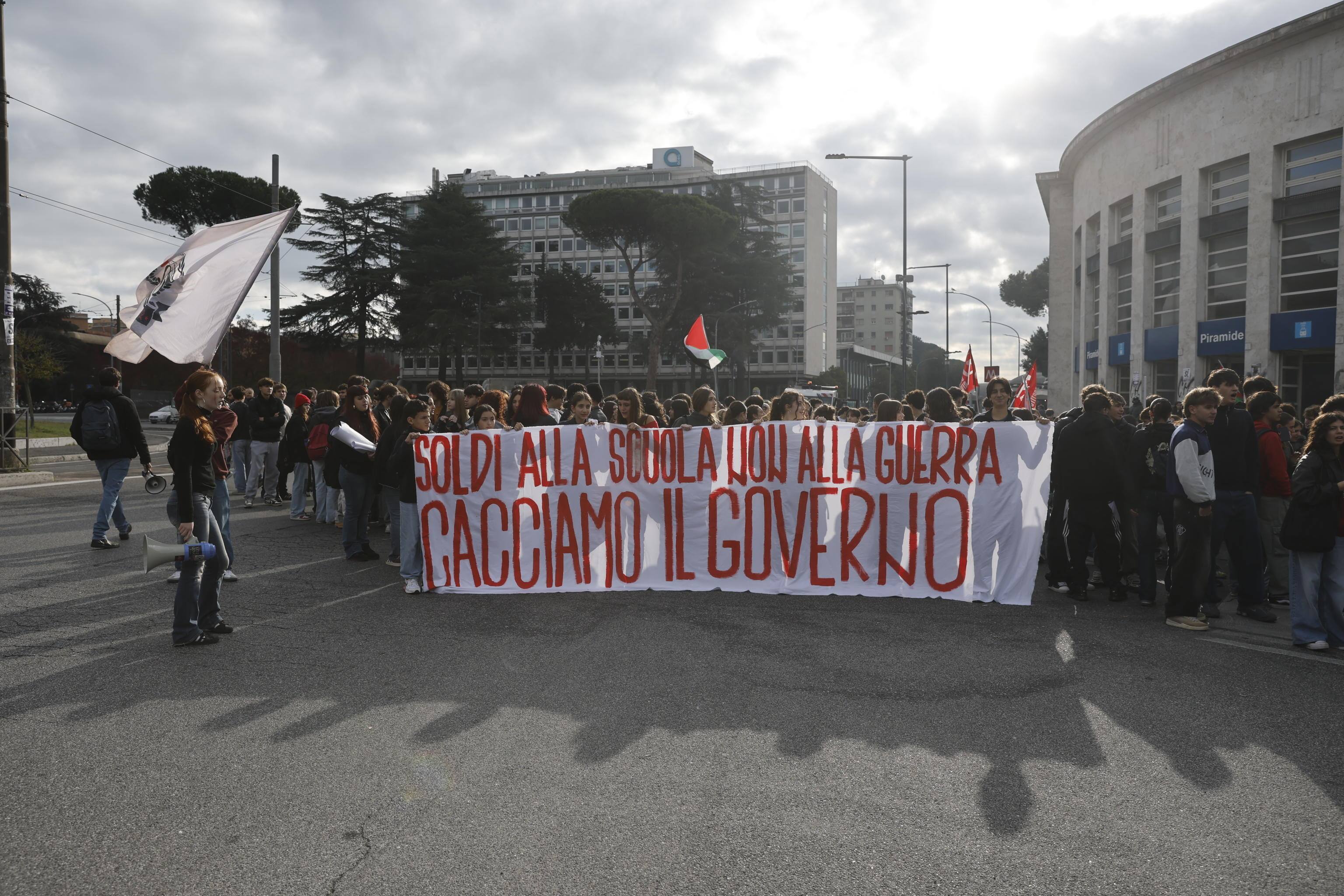 A Roma, gli studenti hanno sfilato in corteo per il "No Meloni day" da Piramide verso il ministero dell'Istruzione e del Merito, in viale di Trastevere. Una volta arrivati davanti al Mim, "chiederemo di essere ricevuti da Valditara, l'unico che non ci ha mai incontrato", ha detto il coordinatore nazionale dell'Unione degli studenti, Tommaso Martelli. I manifestanti hanno raggiunto poi la sede del Ministero senza disordini. "Continueremo a bloccare le strade contro questo governo", hanno detto gli studenti, esponendo cartelli con scritto "Soldi alla scuola non alla guerra". Vicino a un palo sono stati appoggiati i fantocci ripieni di carta con i volti della premier Meloni, della ministra Bernini e del senatore Gasparri. "Contro la finanziaria di guerra vogliamo minimo 20 miliardi per università e ricerca", si legge su un altro cartello di Cambiare Rotta. Tra i manifestanti anche i ragazzi di Fridays for future che tornano in piazza per il clima.