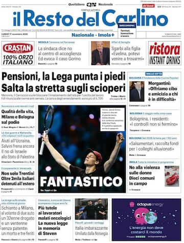 - Il titolo principale è “Pensioni, la Lega punta i piedi. Salta la stretta sugli scioperi”, sulla manovra e le tensioni interne al governo. In apertura anche il tennis con “Fantastico” dedicato al trionfo di Sinner alle Atp Finals. Tra le altre notizie, “La sindaca dice no al centro di accoglienza” e “Sgarbi alla figlia: ‘Evelina, potevi venire a trovarmi’”. In taglio basso, la tragedia di Milano con “Schianto a Milano, al volante di due auto un 32enne drogato e un ventenne senza patente: un morto e tre feriti”.