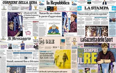 Sulle prime pagine dei principali quotidiani di oggi, il discorso di Mattarella al Bundestag contro ogni aggressione, da Kiev a Gaza: “Troppi Stranamore amano l’atomica”. In primo piano la manovra, con la Lega che tira dritto su età pensionabile e rottamazione e FdI che ritira la proposta sugli scioperi. E nello sport, Sinner è il re dell'edizione 2025 delle Atp Finals: battuto Alcaraz in due set