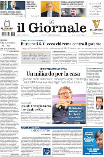 - In apertura “Burocrati & C: ecco chi rema contro il governo”, “I rapporti Meloni-Mattarella restano buoni. Ma Fdi vede nel ‘sistema’ un ostacolo”. In evidenza anche il caso Garante della privacy con “Cercava le talpe di ‘Report’, costretto alle dimissioni”. In taglio centrale la manovra con “Un miliardo per la casa”. Spazio anche a “Quando Travaglio voleva il sorteggio del Csm” e a “Delirio in tv sui sionisti: Iacchetti denunciato”.