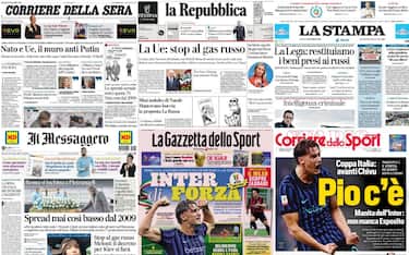 Tra i temi in prima pagina sui giornali, in edicola oggi, spiccano gli ultimi sviluppi legati alla guerra russo-ucraina con "il muro anti Putin" di Nato ed Ue e con Rutte che parla di ulteriori" forniture militari e sanzioni" contro Mosca in assenza di intese sulla pace. Spazio poi all'economia, con lo spread sceso sotto quota 70, e alla cronaca, con il caso del femminicidio nelle Marche. Per lo sport, i risultati della Coppa Italia e l'addio a Nicola Pietrangeli