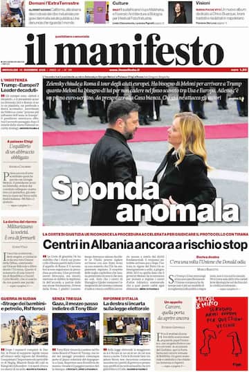 - In apertura la guerra in Ucraina con “Sponda anomala”, con focus sulla necessità del sostegno europeo e sul ruolo di Meloni, che ha incontrato ieri Zelensky. In primo piano anche le parole del presidente Usa: “Trump: ‘Europei? Leader decaduti’”. In spalla l’analisi: “L’equilibrio di un abbraccio obbligato”. In primo piano anche “Centri in Albania ancora a rischio stop”. In taglio basso: “Gaza, il mezzo passo indietro di Tony Blair”.