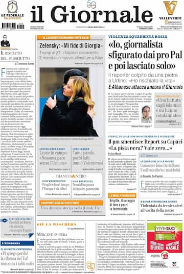 - L’apertura è dedicata all’incontro Zelensky-Meloni “Zelensky: ‘Mi fido di Giorgia” e all’attacco del presidente Usa all’Ue “Trump ai 27: “Nazioni decadenti. E manda un nuovo ultimatum a Kiev”, con “Leone in campo: ‘Nessuna pace senza l’Unione’” e l’analisi “Tante parole, pochi fatti: inutili Volonterosi”. In spalla l’intervista al reporter aggredito a Udine: “Io, giornalista sfigurato dai pro Pal e poi lasciato solo”.