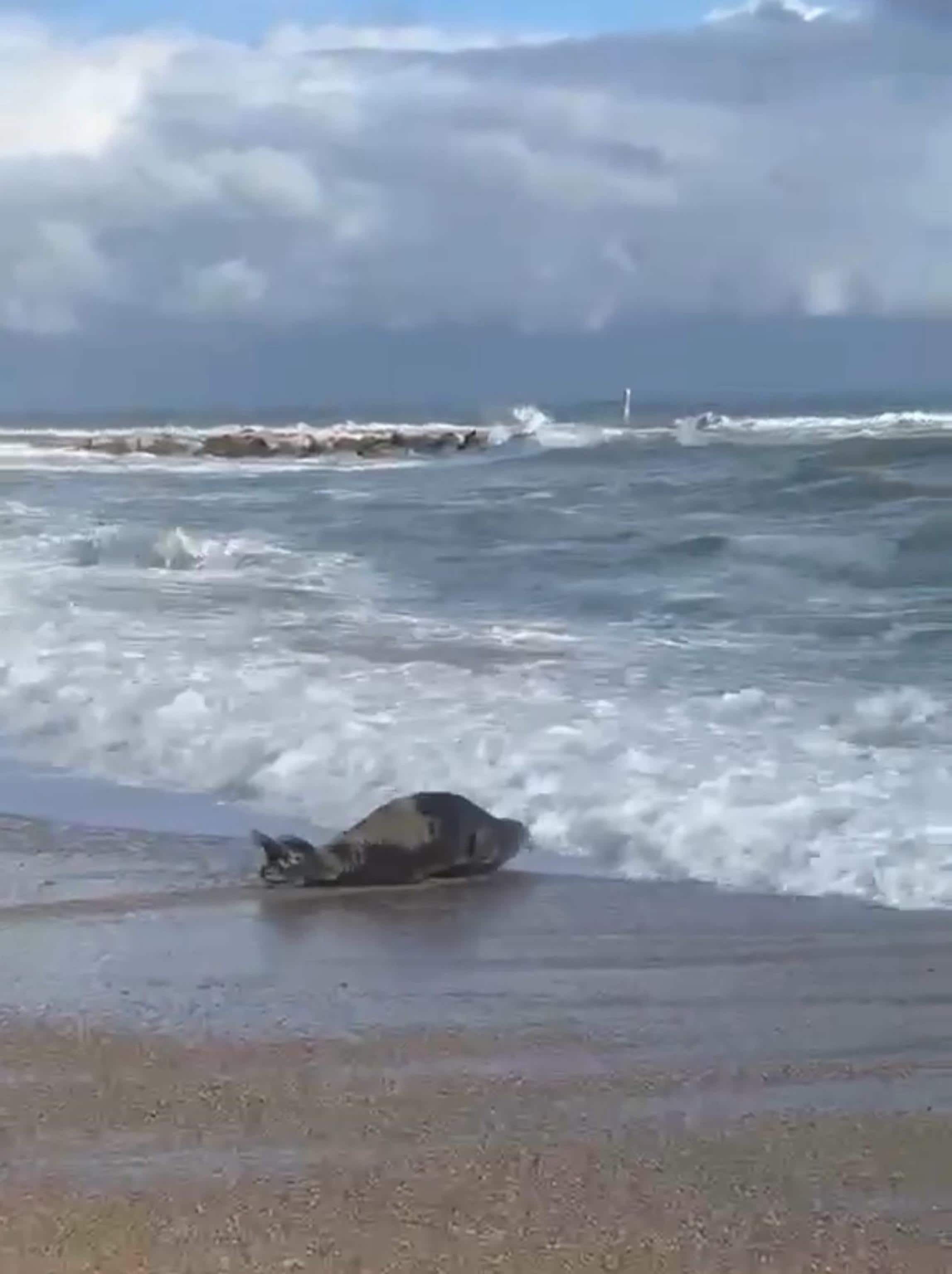 A notarla è stata una donna che stava passeggiando lungo l'arenile. L'animale si era adagiato dietro una duna, davanti a un hotel, per poi rientrare lentamente in acqua e allontanarsi