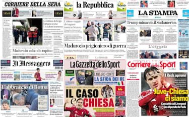 - New York: "Maduro, via al processo. La sinistra già lo assolve". E Trump ora "minaccia Messico e Colombia". Caso Report: "Il bavaglio rosso". M5s e Ranucci "attaccano il Giornale dopo lo scoop sui dossieraggi". Il centrodestra: "Stampa libera da difendere". La tragedia di Crans-Montana, rientrate le salme dei ragazzi morti: "L'Italia vi abbraccia". Caso di Garlasco: "La prova che può scagionare Stasi".