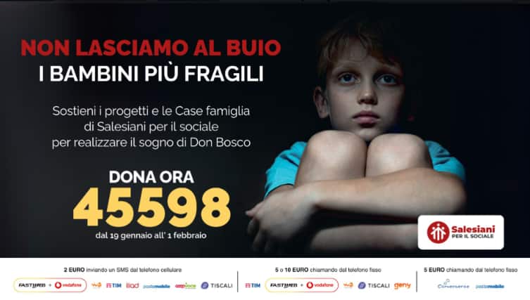 Proprio alla luce di questo scenario prende il via, fino al 1° febbraio 2026, la campagna di sensibilizzazione e raccolta fondi “Non lasciamo al buio i bambini più fragili”, con cui Salesiani per il sociale intende rafforzare i propri interventi su educazione, accoglienza e accompagnamento allo studio e al lavoro. L’obiettivo è colmare il vuoto educativo e relazionale denunciato dai giovani stessi, sostenendo percorsi capaci di offrire stabilità, ascolto e opportunità concrete, soprattutto nei contesti più vulnerabili. Attiva in oltre 600 realtà territoriali e a sostegno di più di 100mila beneficiari ogni anno, la rete invita tutti a contribuire attraverso un SMS o una chiamata al numero solidale 45598, per aiutare i bambini di oggi a diventare adulti più forti, consapevoli e resilienti domani.