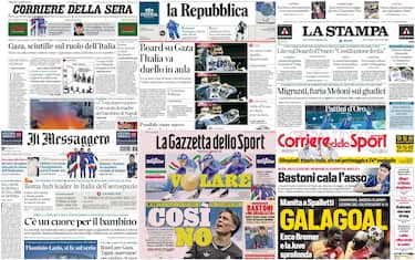 - Tanti i temi sulle aperture dei quotidiani in edicola stamattina. In primo piano, sul Corriere della Sera, le polemiche legate al ruolo dell'Italia nel Board of Peace ideato da Donald Trump. Meloni: "Opposizione confusa, Palestina non era la priorità?". A centro pagina fotonotizia per l'incendio che ha devastato il teatro Sannazzaro a Napoli e il nuovo cuore a disposizione per il trapianto al bambino del capoluogo campano