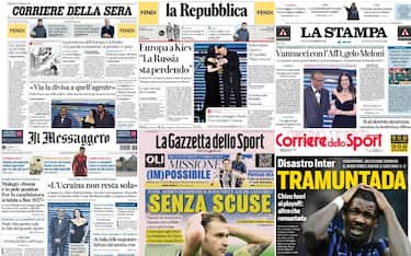 - L'Ucraina tra i titoli in prima pagina con la "promessa dell'Europa" a Zelensky: "La parola si mantiene, il prestito ci sarà". Rogoredo, pusher ucciso, parla il capo della Polizia Pisani: "Via la divisa a quell'agente". Cinturrino davanti al gip: "Ho perso la testa". Prima serata del Festival di Sanremo con "la voce di Baudo" che apre e commuove: "I trenta big all'Ariston con Pausini e Sandokan". Calcio: "Inter, è già addio alla Champions".