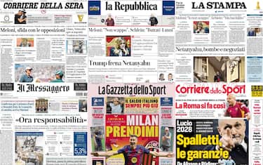 - In primo piano Spalletti e il rinnovo: "Investimenti mirati per fare il grande salto". Intanto, la Juve "cerca solo big", da "Alisson a Rüdiger". Spazio anche alla Roma e alla sfida di questa sera con il Pisa, mentre Gasperini "indica la strada": "Sul mercato bisogna cambiare il target degli acquisti. Serve altra gente come Malen e Wesley". Poi, l'Inter: "Bastoni vuole restare". In prima pagina anche la sconfitta di Bologna in Euroleague e Fiorentina in Conference League. Infine, "Sinner e Alcaraz avanti insieme" a Montecarlo.