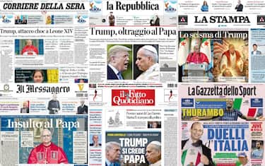 - In primo piano quello che viene definito "l'Antipapa". "Scisma di Trump contro Leone. Meloni s'infuria". Attacco choc del tycoon: "Prevost pessimo e debole". La premier: "Inaccettabile". Iran, blocco navale Usa su Hormuz: "Chi lo viola verrà eliminato". Ungheria, Magyar gela la sinistra: "Giorgia? Ottimo lavoro. La incontrerò presto". Caos Figc: "I club di A lanciano Malagò, sfiderà Abete".
