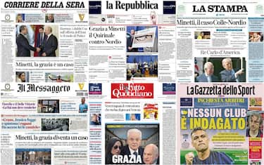 - Ancora il caso Minetti in primo piano: "Grazia, il Quirinale contro Nordio". Dubbi sui requisiti per la clemenza: "Serve una verifica". Il ministro: "No ad elementi negativi". Il Pd: "Si dimetta". Sparatoria alla Casa Bianca, Allen in aula incriminato: "Tentato omicidio di Trump". Spazio ancora per l'accusa di Venezi all'orchestra: "Io, offesa e bullizzata". Caso arbitri, l'inchiesta si allarga: "Rocchi parlava con molti club".