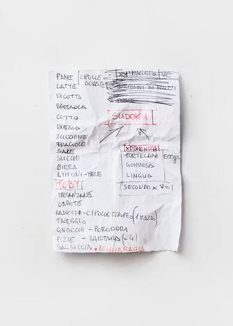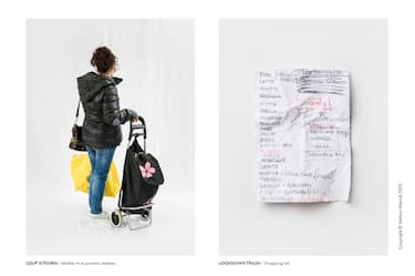 Il suo "catalogo del Lockdown" raccoglie oggetti comuni gettati o dimenticati a terra: "Si poteva uscire di casa solo per fare la spesa, o per andare al tabacchino a breve distanza, o per portare fuori il cane. Così per terra restavano liste, mascherine, scontrini del food delivery, evocativi della fretta di chi usciva o del tempo passato in fila ai supermercati...", spiega
