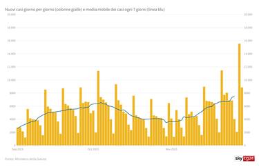 Nella settimana che si è conclusa il 29 novembre, ultima per la quale abbiamo dei dati, si sono registrati 52.177 nuovi casi, contro i 44.955 di quella conclusasi il 22 novembre e i 34.319 di quella terminata il 15 novembre. Dunque, nell’ultima settimana i casi positivi sono aumentati del 16 per cento rispetto a quella precedente e del 52 per cento rispetto a quella terminata il 15 novembre.