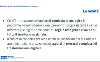 Sono state pubblicate sul sito del ministero per l'Innovazione tecnologica e la Digitalizzazione le schede illustrative delle misure su digitalizzazione e innovazione contenute nel Decreto "Semplificazione e innovazione digitale", pubblicato in Gazzetta Ufficiale. Al centro, la digitalizzazione al servizio di cittadini e imprese, per semplificare i rapporti con la Pubblica amministrazione e contribuire al rilancio economico del Paese dopo la crisi generata dalla pandemia di coronavirus. Dallo Spid alla Carta di identità elettronica, ecco tutte le novità