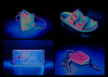 Grazie a luci multispettro solitamente usate per le indagini scientifiche, i fotografi Marco Casino e Pietro Baroni hanno ritratto, in pieno lockdown, le tracce che lasciamo senza rendercene conto sui nostri oggetti personali e negli ambienti che ci circondano. Il risultato fa vacillare le nostre certezze.