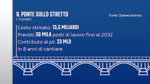 Il 6 agosto 2025 il Cipess - Comitato interministeriale per la programmazione economica e lo sviluppo sostenibile - approva il progetto definitivo del Ponte sullo Stretto di Messina. Sarà lungo 3.666 metri e largo 60. Le torri saranno alte 399 metri, per una capacità massima di 6mila veicoli all'ora e 200 treni al giorno.