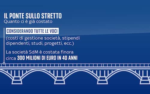 Nonostante del ponte non vi sia traccia, tra la progettazione, gli studi effettuati, il pagamento degli stipendi e i costi di gestione delle società, sono stati spesi fino ad oggi circa 300 milioni di euro. Lo scorso 16 marzo il governo ha approvato un decreto che consente l’immediato riavvio del percorso di progettazione e realizzazione dell’opera