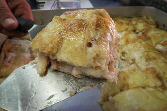 "È un piatto di recupero – sottolinea Cuffari – che serviva anche per recuperare il pane bianco vecchio, all'epoca molto costoso, che quindi non poteva essere sprecato". Anche se si chiama Zuppa, durante la sagra annuale assume più l'aspetto di una lasagna (foto: Facebook/Valle d'Aosta)