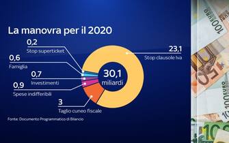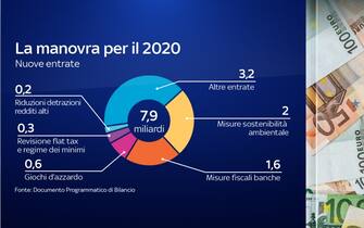 Serviranno 30 miliardi per sostenerla e ci saranno coperture dalle casse dello Stato per circa la metà. Tra i nuovi tributi la "plastic tax e la "sugar tax". La pressione fiscale sale dello 0,1%.