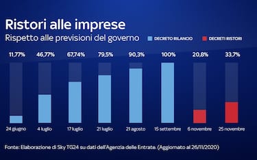 Il bonus tracker di Sky TG24 segnala che è stato pagato un terzo dei ristori alle aziende promessi dal governo. Circa 1,6 miliardi di euro, sui 4 e mezzo promessi