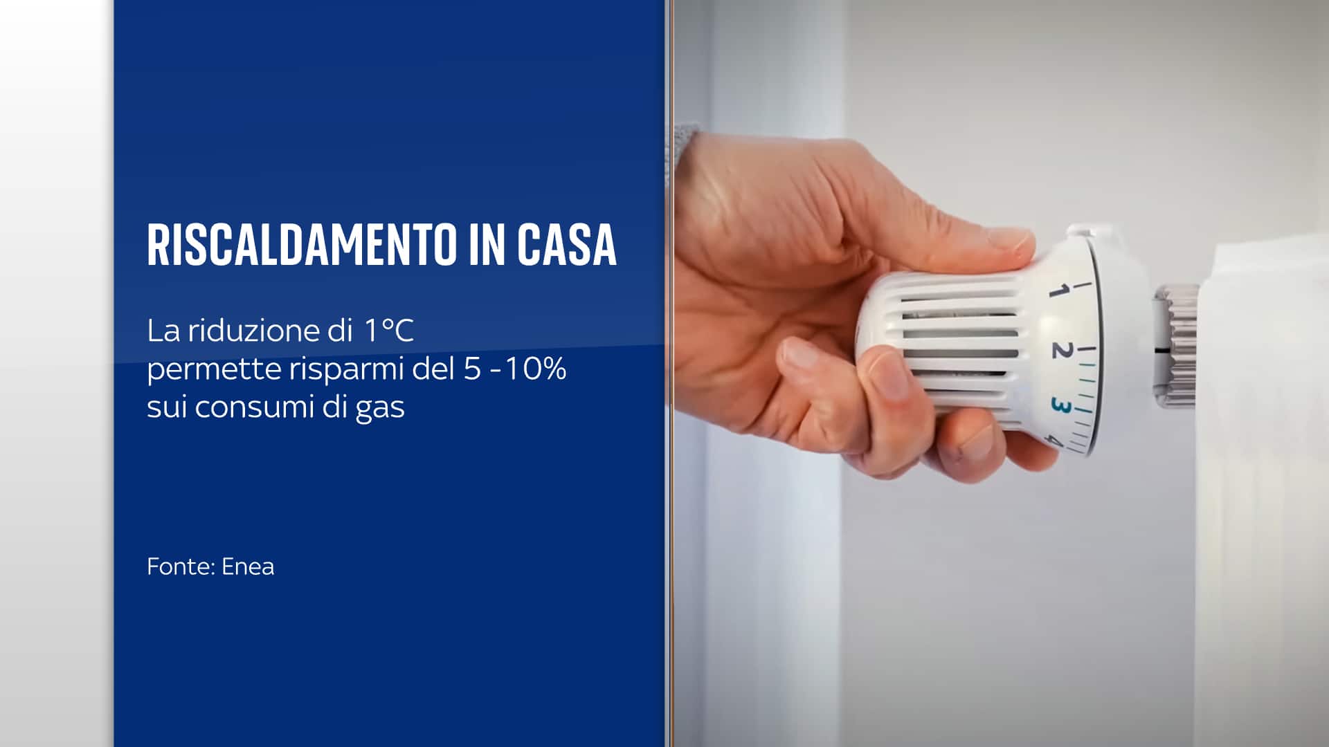 La riduzione di un solo grado della temperatura interna comporterebbe secondo l’Enea un risparmio dal 5 al 10% dei consumi.