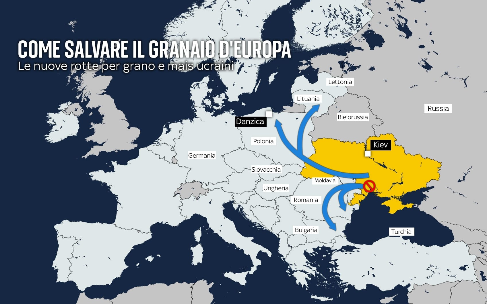 Nel pacchetto proposto c’è anche una semplificazione burocratica alle dogane e la possibilità di utilizzare i depositi europei di cereali. Le conseguenze in caso di fallimento sarebbero molto gravi: il nuovo raccolto non troverebbe posto nei silos e dovrebbe essere lasciato nei campi, e d’altra parte si rischierebbe una crisi alimentare nei paesi più dipendenti da Kiev, in particolare in Medio Oriente e nell’Africa sub-sahariana. L’Ue intende anche evitare di lasciare una prateria alla Russia, che è destinata a ottenere un raccolto record e potrebbe sfruttare le forniture per aumentare il proprio export e accrescere la sua influenza internazionale.