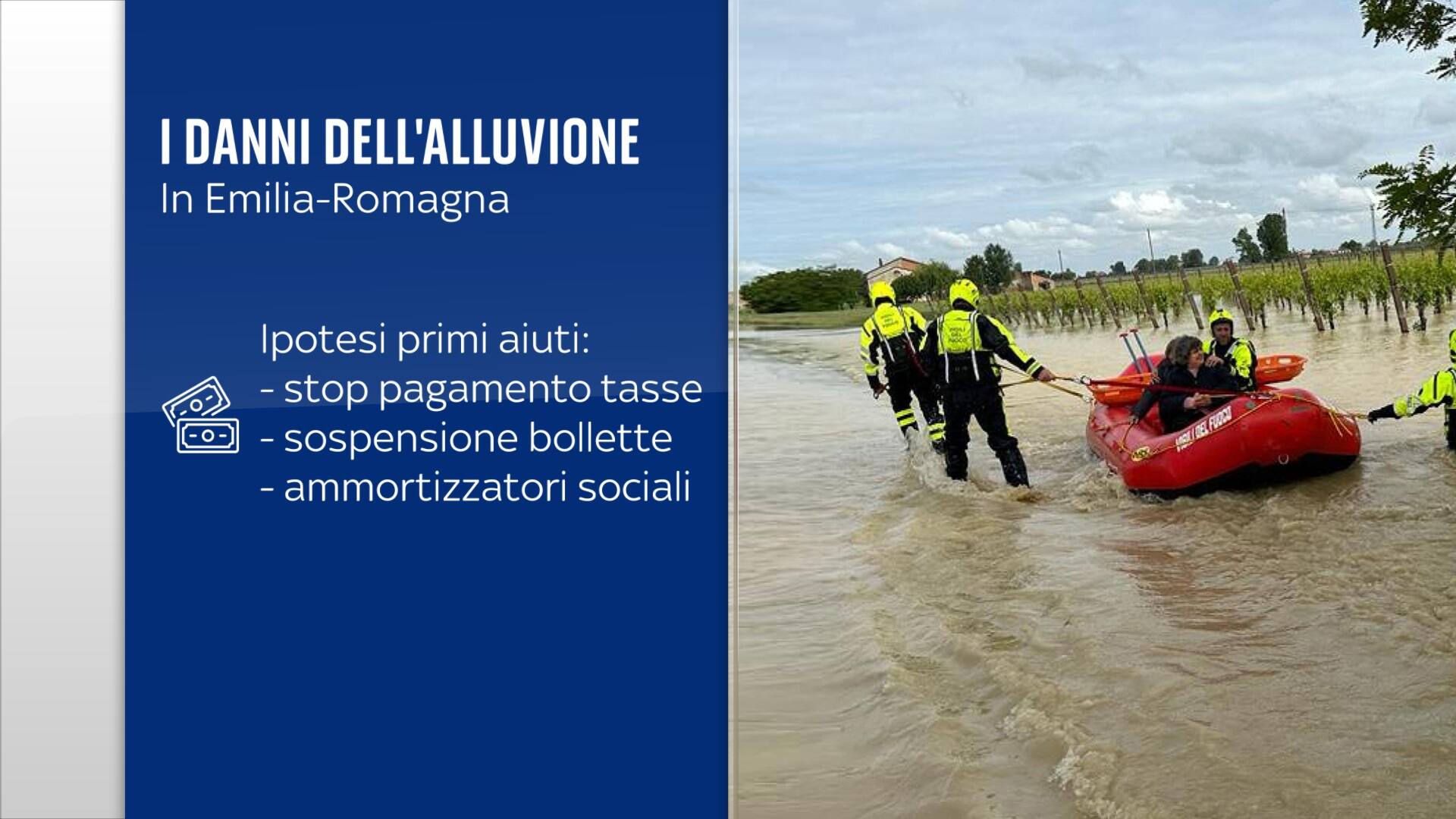 Tra le prime misure sul tavolo, intanto, la sospensione di una serie di scadenze fiscali, forse fino a dicembre. Nelle zone più colpite non si pagheranno le tasse (dall’Irpef all’Iva) e altri tributi, come Imu o bollo auto. La durata di questa agevolazione dipende da quanti saranno i diretti interessati, parliamo di un’area che - solo considerando Forlì, Cesena, Ravenna e Rimini - coinvolge una fetta consistente dei 4,5 milioni di abitanti dell’Emilia-Romagna, oltre a migliaia di imprese e lavoratori in uno dei motori della nostra economia.