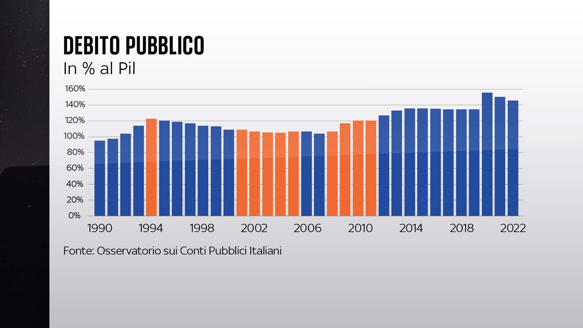 La crescita economica è inferiore agli anni precedenti, ma la disoccupazione si riduce e il debito pubblico prosegue la sua discesa, arrivando al suo punto più basso prima di riesplodere con la successiva crisi del debito. Sarà proprio questa a giocare un ruolo chiave qualche anno più tardi, durante il quarto e ultimo governo Berlusconi, decretando la fine della sua stagione da premier. Inizia nel 2008, anno del crollo di Lehman Brothers e del collasso finanziario, per poi trasferirsi ai debiti sovrani.