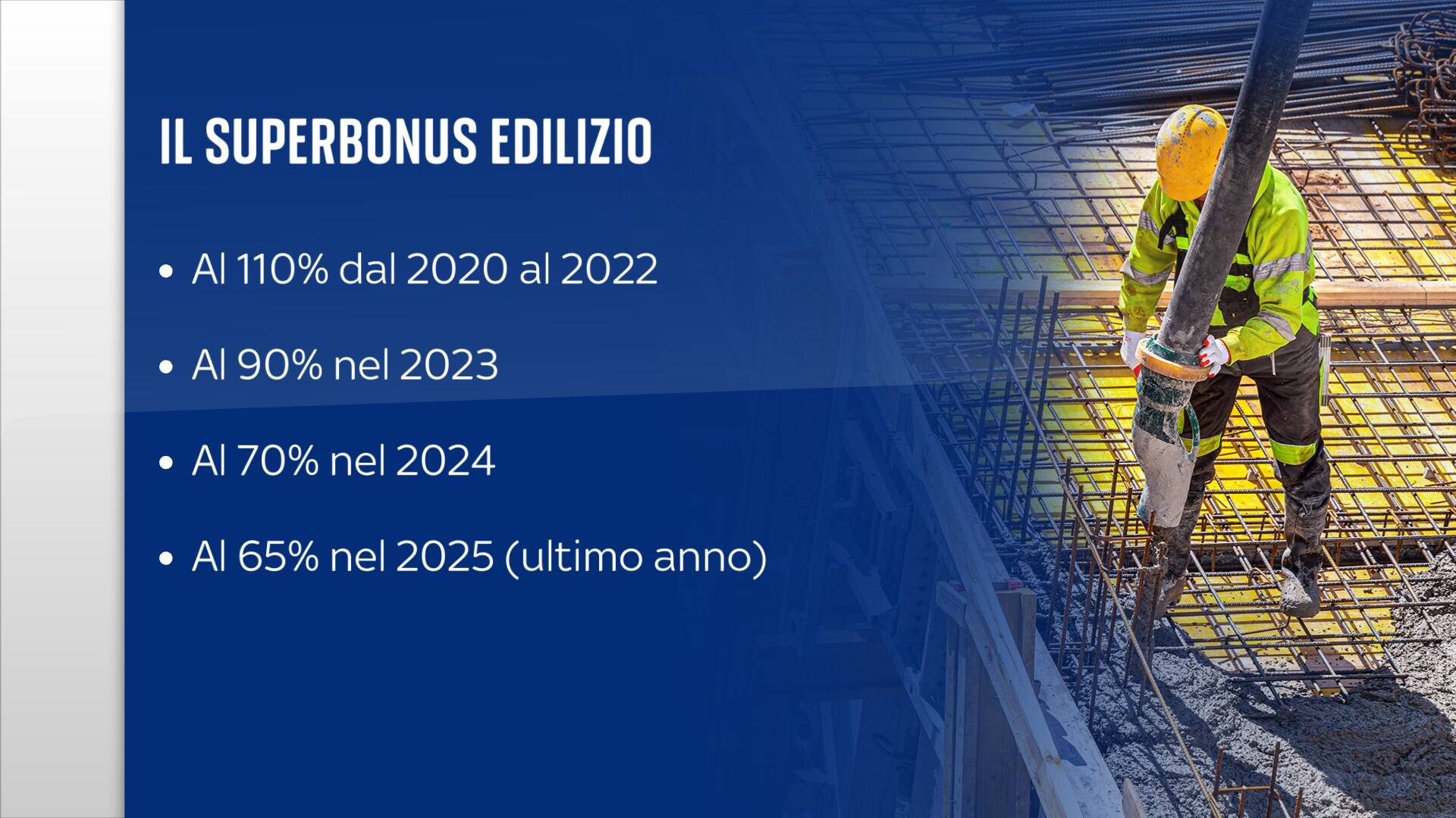 EconomiaL'agevolazione fiscale scende al 70 per cento e per chi non ha completato le ristrutturazioni c'è il rischio di dover mettere i soldi mancanti di tasca propria. I cantieri da portare a termine nei condomini valgono quasi 10 miliardi di euro. In totale gli sconti hanno superato 102 miliardi di spesa per lo Stato