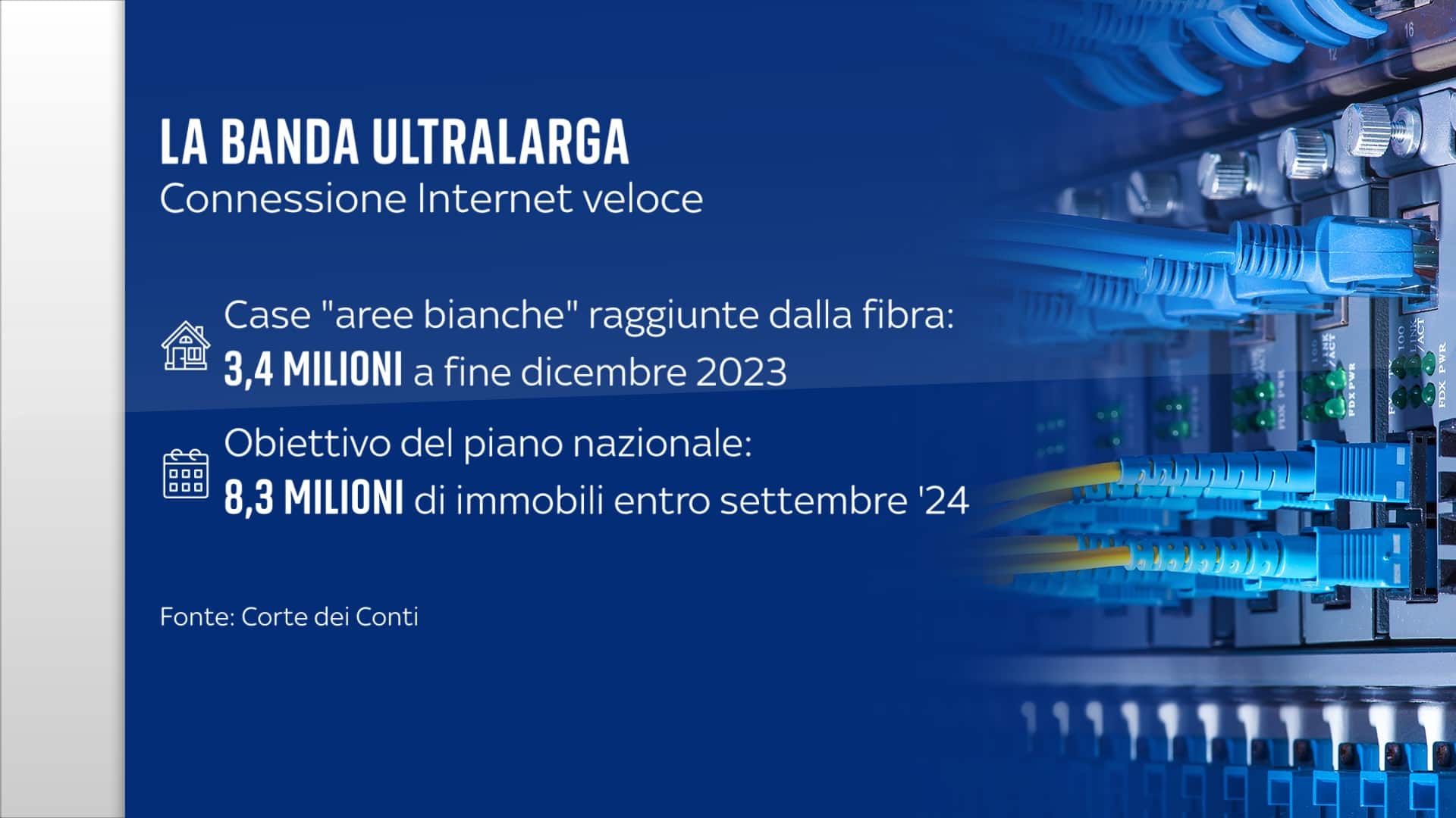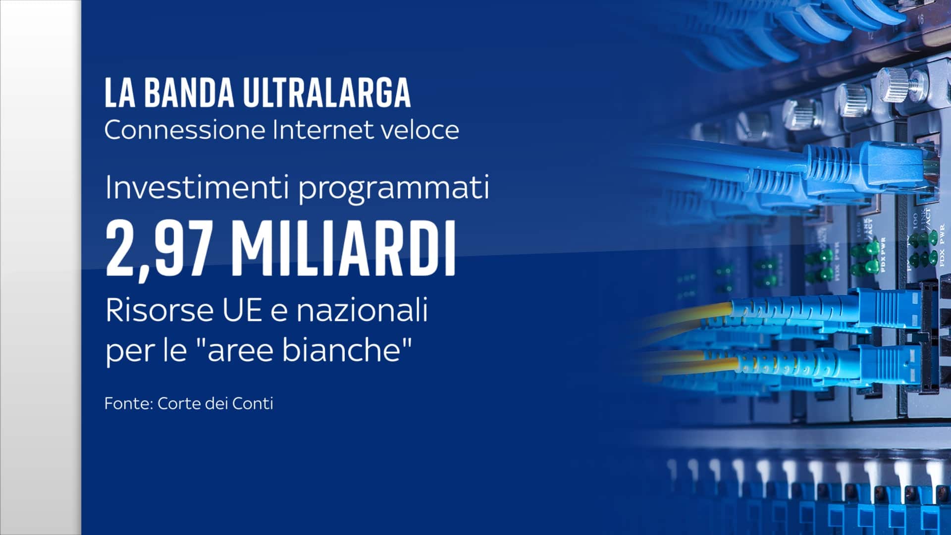 Parliamo delle cosiddette "aree bianche", quelle dove gli operatori privati non investono perché lo ritengono poco remunerativo e dove lo Stato, dal 2015, si è impegnato a mettere i soldi per ridurre il divario. Quasi tre miliardi, tra fondi europei e nazionali, ma i tempi di realizzazione si sono diluiti molto negli anni, tanto che l’ultimazione delle opere è stata posticipata diverse volte e ora anche l’obiettivo di settembre 2024 è a rischio.