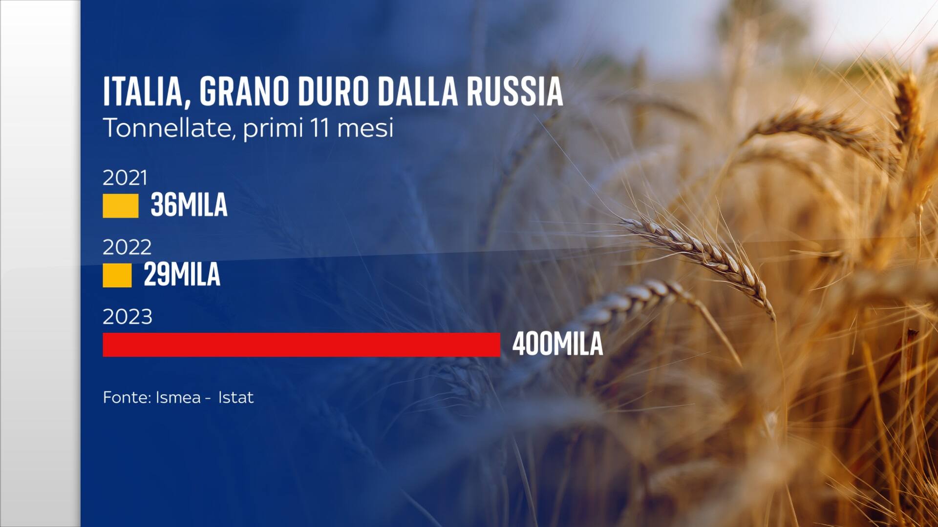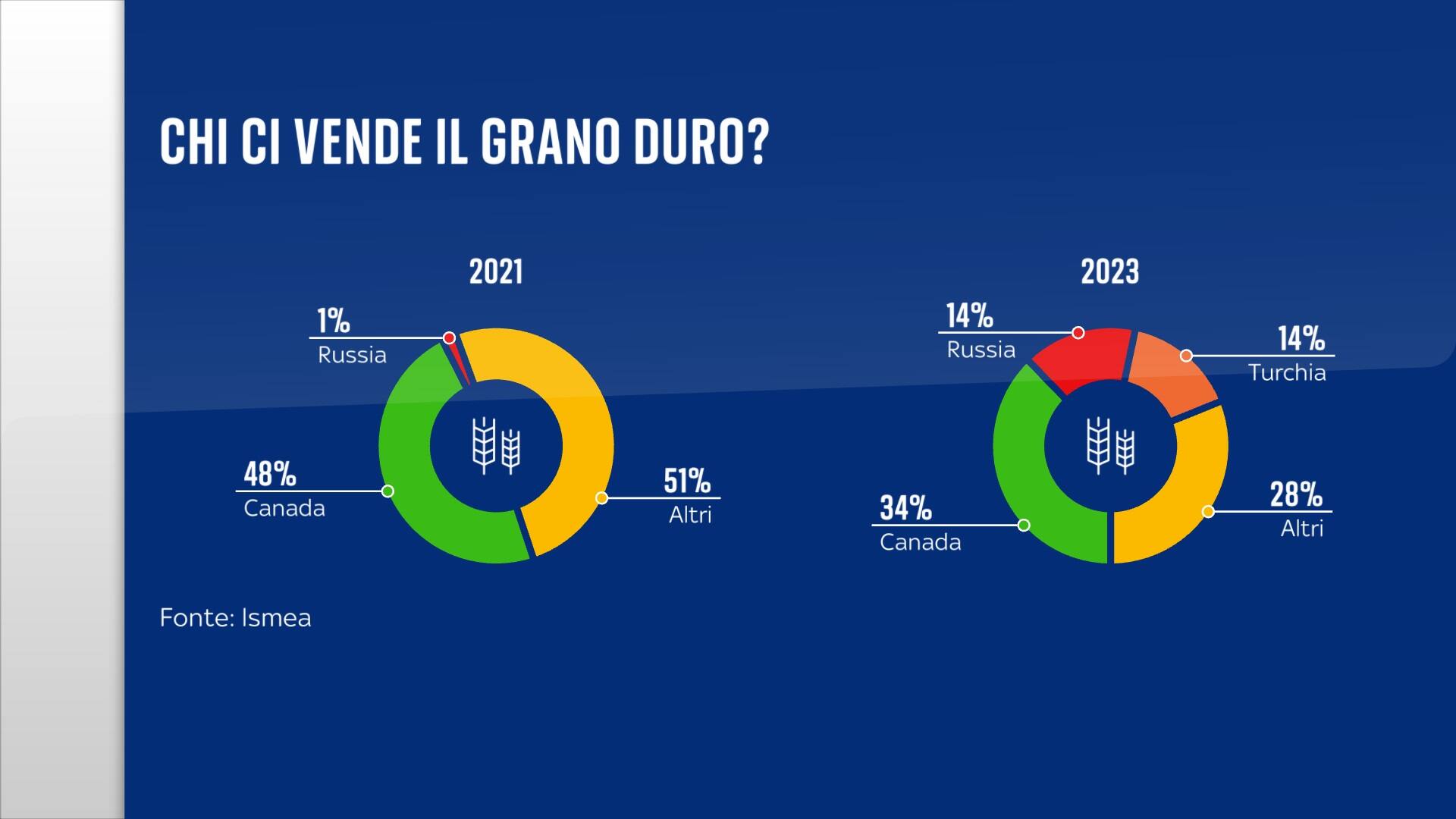 Siamo un Paese che ha fame di grano (basti pensare alla pasta) ma la spinta è arrivata soprattutto dai minori costi e così si sono ridotti gli scambi con alcuni partner storici (pensiamo al Canada), facendo della Russia il nostro terzo fornitore, insieme alla Turchia, da dove probabilmente Mosca fa passare parte dei suoi prodotti per l’Europa.