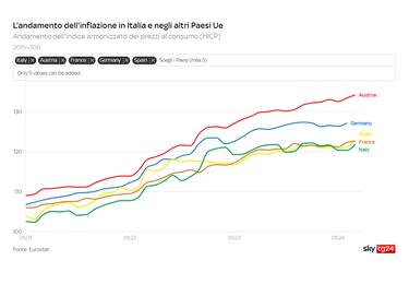 Passando all’inflazione, la previsione di Confcommercio è che dopo la risalita di marzo all'1,2% dovrebbe rallentare ad aprile all'1,0%. Secondo l’associazione, si confermano in ulteriore raffreddamento i prezzi degli alimentari, progressivamente sempre più vicini all'andamento generale dei prezzi. "Il permanere dell'inflazione sui valori che la nostra economia aveva sperimentato negli anni precedenti alla fiammata registrata tra la fine del 2021 e gli ultimi mesi del 2022, soprattutto per i beni acquistati con maggior frequenza, è una delle premesse per spingere le famiglie a moderati miglioramenti dal lato della domanda. Andamento che potrebbe essere favorito anche dal permanere di dinamiche occupazionali debolmente positive e dai recuperi di reddito generati dai rinnovi contrattuali", ha spiegato Confcommercio. A marzo 2024 l'Indicatore dei consumi Confcommercio ha già evidenziato una crescita dello 0,4% rispetto allo stesso mese del 2023.