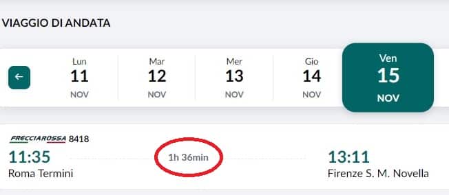 Lo stesso biglietto per metà novembre, quando non sono più programmate interruzioni, indica che ci vorrà l’ora e mezza standard.