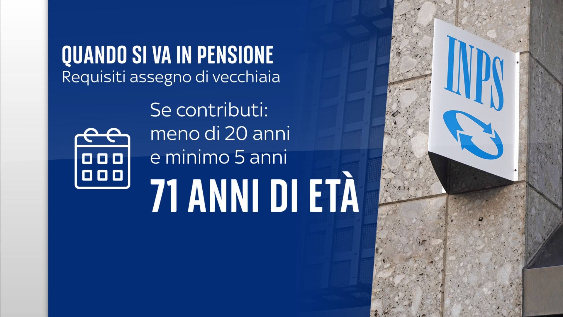 E’ questa infatti la soglia per chi ha almeno cinque anni di versamenti ma non riesce ad arrivare a 20. E se gli anni di contributi sono meno di cinque dovrà attendere ancora. Per chi si trova in queste situazioni il traguardo si taglia, dunque, oltre lo standard oggi fissato per avere l’assegno di vecchiaia, che è di 67 anni.