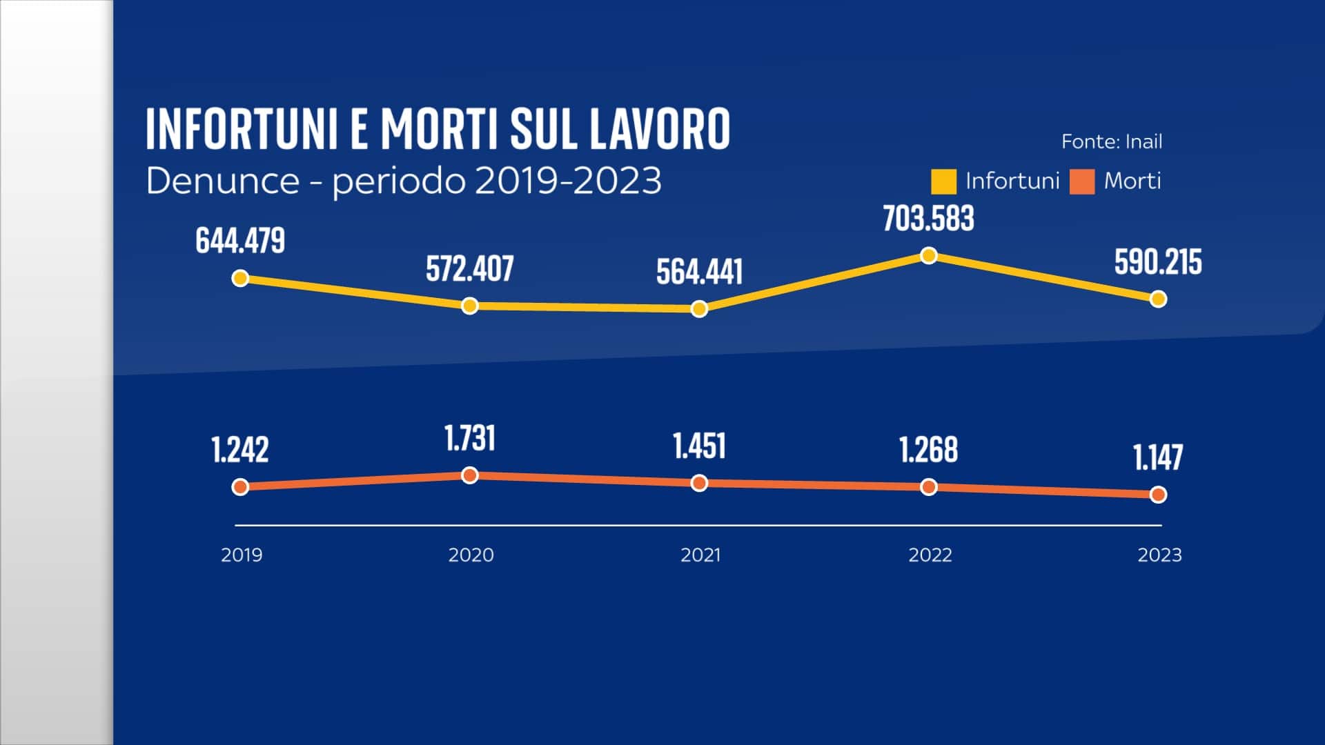 EconomiaDalla relazione annuale dell'Inail emerge una diminuzione. Ha influito il calo dei conteggi dovuti al Covid. Ma anche rispetto al periodo prepandemico si nota un miglioramento. I decessi sono però più di tre al giorno
