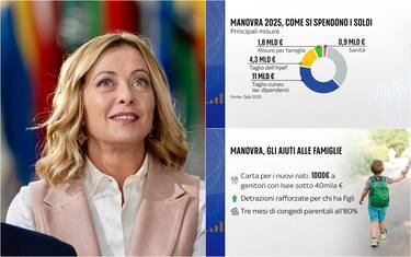 La manovra per il 2025, ha detto la premier Meloni, si concentra sulle priorità, come "lavoro, salari, famiglia e sanità e lo fa senza aumentare le tasse e mantenendo i conti in ordine”. Sono diverse le misure previste, a partire dal nuovo meccanismo per rafforzare le busta paga dei dipendenti con un bonus fino a 20 mila euro e un meccanismo fiscale a decalage fino a 40mila euro. Presente anche una stretta sulle detrazioni per chi ha un reddito oltre i 75mila euro con quoziente familiare, un tetto ai compensi per gli enti alle risorse per i contratti pubblici, un’estrazione aggiuntiva per il Superenalotto e il restyling dei bonus edilizi. E ancora si interviene sulle pensioni, con la proroga di Quota 103, Ape sociale e Opzione donna. La manovra poi prevede anche un aumento delle pensioni minime, che dal 2025 salgono del 2,2% a 617,9 euro: tre euro in più dai 614,77 attuali. Ma senza un'intervento sarebbero calate, scendendo a 604 euro. Fronte sanità: la manovra stanzia anche 1,3 miliardi per il 2025 e risorse per i contratti. Promettendo assunzioni a partire dal 2026.