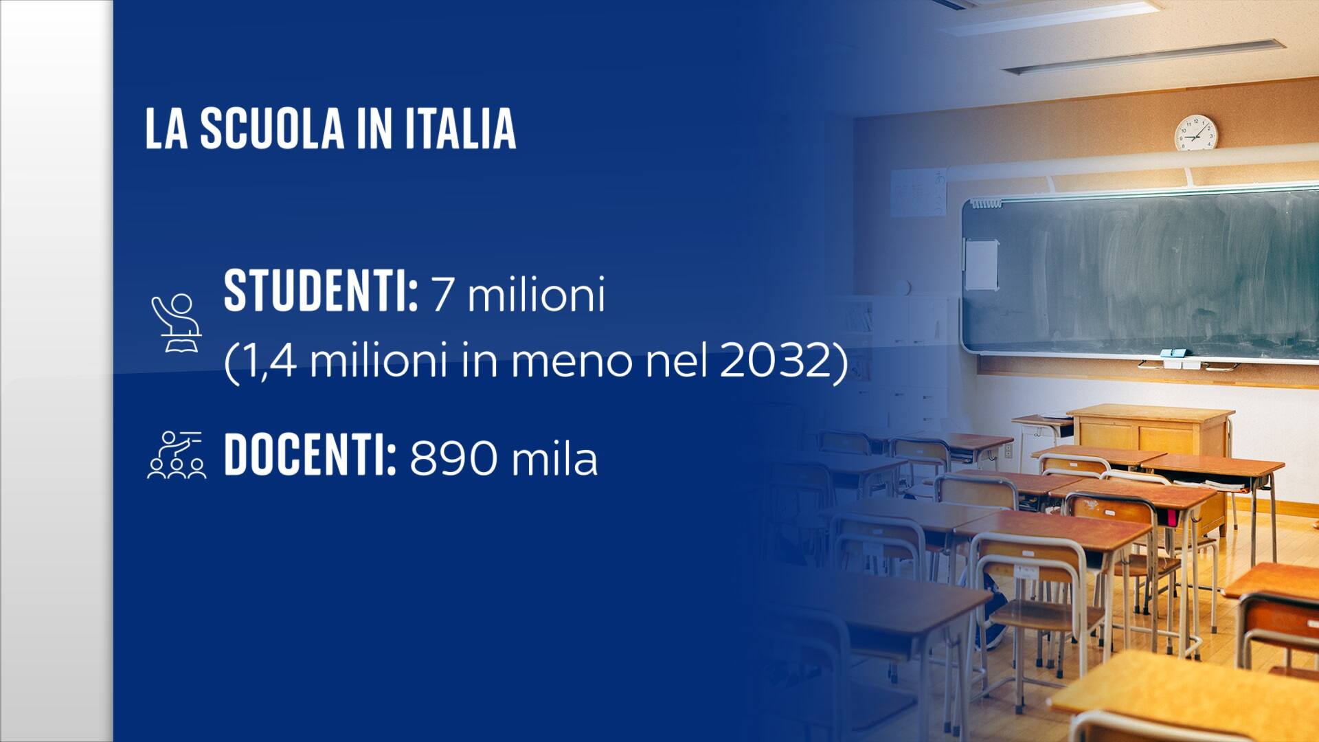 C’è da dire che il numero degli studenti è in costante diminuzione da diversi anni e si prevede che, per effetto del calo delle nascite, scenderà ancora in futuro, con 1,4 milioni di alunni in meno nel 2032.