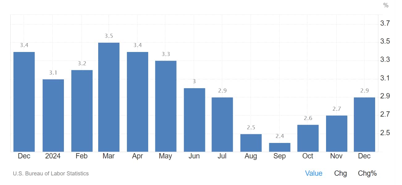 Oltre ai dati relativi al mercato del lavoro, l’aumento dei prezzi resta l’incognita sulle implicazioni delle future politiche del presidente Trump. Da un lato, la sua promessa di riduzione della spesa pubblica potrebbe avere effetti disinflazionistici. Dall’altro, misure come nuovi dazi sulle importazioni di beni negli Stati Uniti e una politica più restrittiva sull’immigrazione potrebbero generare pressioni inflazionistiche, aumentando i costi di produzione e i salari nel mercato del lavoro.