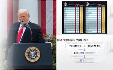 Giornata nera per le Borse europee, che sprofondano sulla scia dell'annuncio di Donald Trump sui dazi statunitensi, la risposta della Cina e i timori di una recessione globale (LE NEWS IN DIRETTA). Piazza Affari in picchiata: nel corso della seduta il Ftse Mib ha toccato -7,5% a 34.418 punti, lo stesso livello dell'11 settembre, poi ha chiuso in calo del 6,53%. Ampiamente in negativo anche Madrid (-5,83), Francoforte (-4,95%), Parigi (-4,26%), Londra (-4,95%). Oggi per le principali Borse europee sono andati in fumo 819 miliardi di euro: si sommano ai 422 miliardi di ieri, portando il saldo negativo a oltre 1.241 miliardi in due giorni. In forte calo anche Wall Street, con tutti e tre gli indici principali sotto il 5%: Dow Jones -5,50% a 38.314,86 punti, Nasdaq -5,82% a 15.587,79 punti, S&P 500 -5,97% a 5074,08 punti.