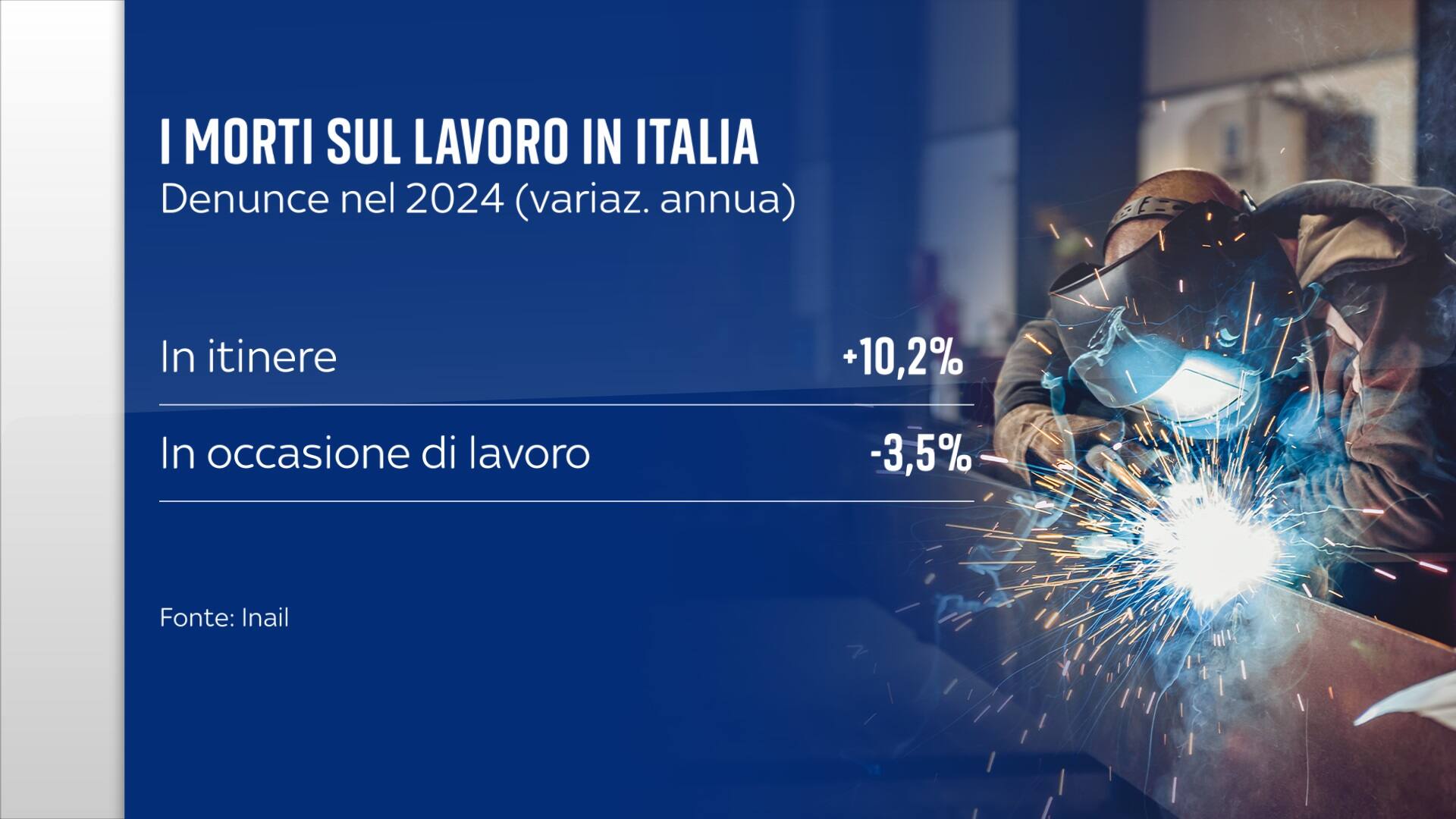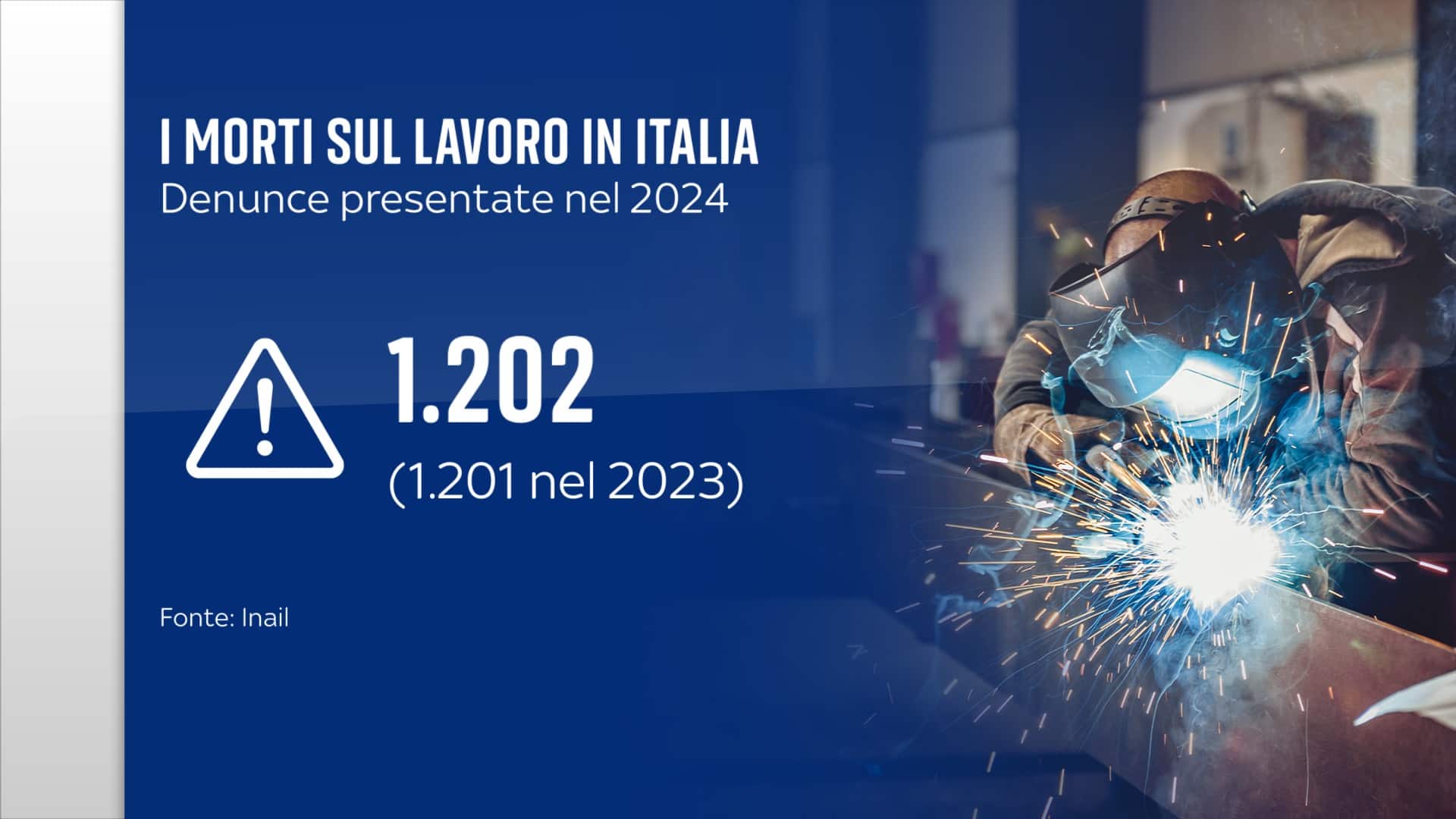 Oltre tre morti al giorno. Resta inchiodata a questa tragica statistica il numero di decessi sul lavoro nel nostro Paese. Tra chi ha perso la vita in itinere, cioè nel tragitto da casa al proprio posto, e chi durante lo svolgimento delle proprie mansioni, sono state 1.202 le persone morte l’anno scorso, una in più rispetto al 2023.