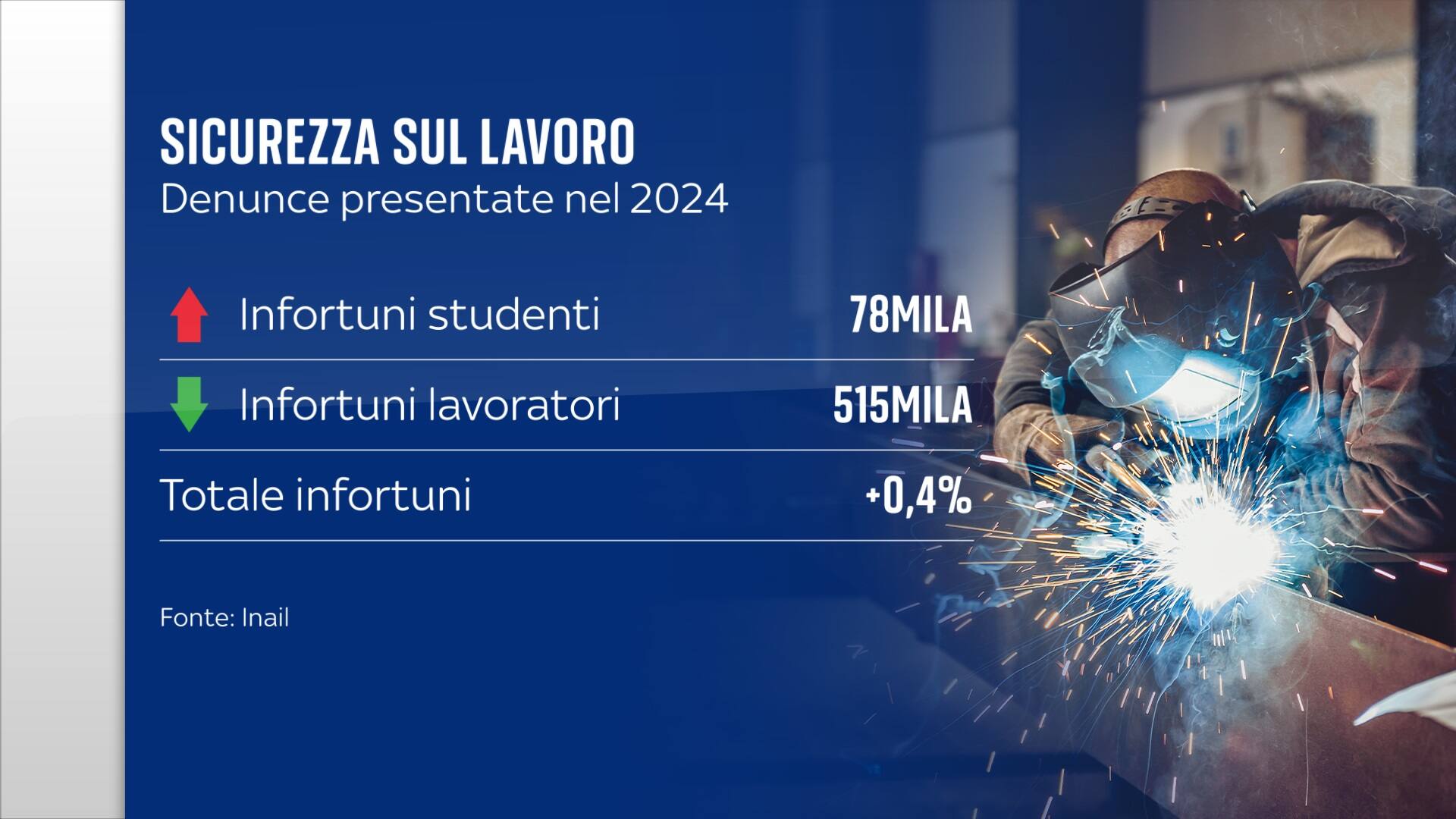 EconomiaNel 2024 sono deceduti 1.202 lavoratori, uno in più rispetto all'anno precedente. In lieve rialzo il numero di infortuni, a causa del maggior quota di studenti che ha denunciato incidenti. Il presidente dell'Inail D'Ascenzo: "La parola d’ordine è prevenzione". La premier Meloni: "La sicurezza è una delle priorità del governo". Il "tesoro" dell'Istituto assicurativo sfiora i 44 miliardi, soldi fermi nella Tesoreria dello Stato