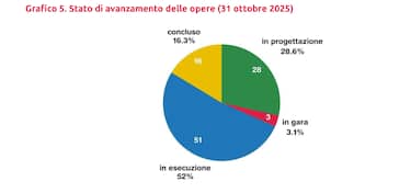 A fine ottobre - quindi va chiarito che la situazione ad oggi potrebbe essere diversa - risultavano concluse 16 opere, mentre 51 erano in esecuzione, tre in gara e addirittura 28 ancora in progettazione.