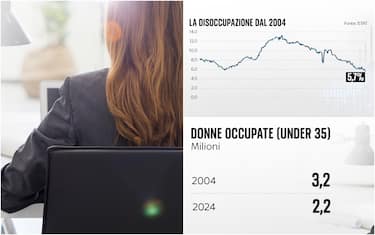 - Il boom di occupazione non non riguarda nemmeno le donne: più precisamente è diminuita l’occupazione delle donne under 35 negli ultimi 20 anni: nel 2004 erano 3,2 milioni, nel 2024 sono scese a 2,2 milioni.