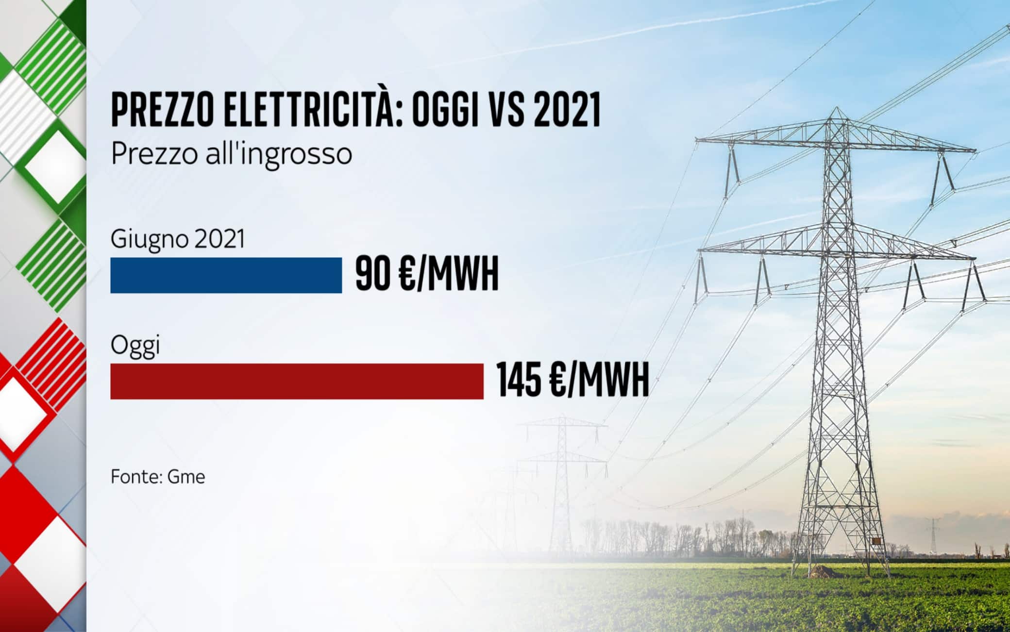 Se si mette a confronto il prezzo della luce del 2021 con quello odierno, è evidente come allora ci fosse un prezzo sensibilmente più basso, intorno ai 90 euro al kilowattora, mentre oggi si viaggia sui 145 euro al kilowattora.