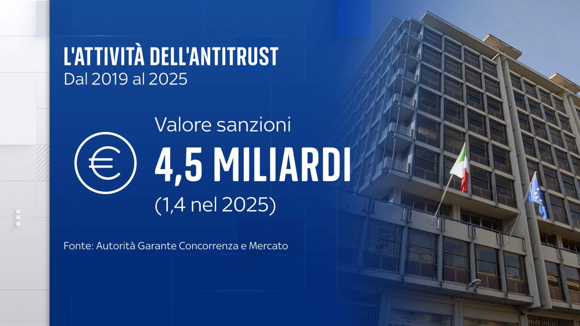 Antitrust: multe per 4,5 miliardi di euro, ai cittadini ristori per 208 milioni