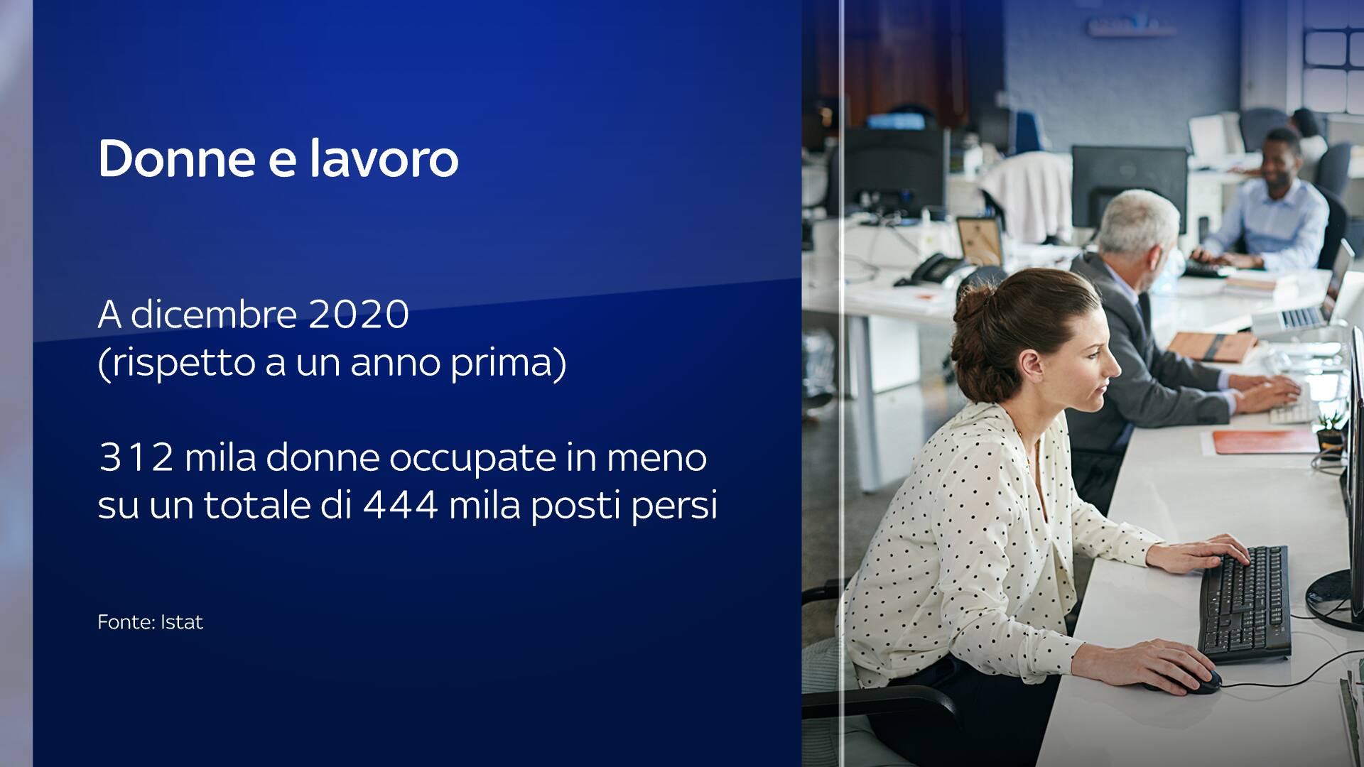 Una delle priorità del programma di governo di Mario Draghi è quello di ridurre le differenze fra donne e uomini nel mondo del lavoro. Nel nostro Paese la quota di occupazione femminile è bassa, nel settore privato gli stipendi delle donne sono inferiori e spesso le loro carriere sono interrotte, o frenate, per l'assenza di sufficienti misure di assistenza alla famiglia