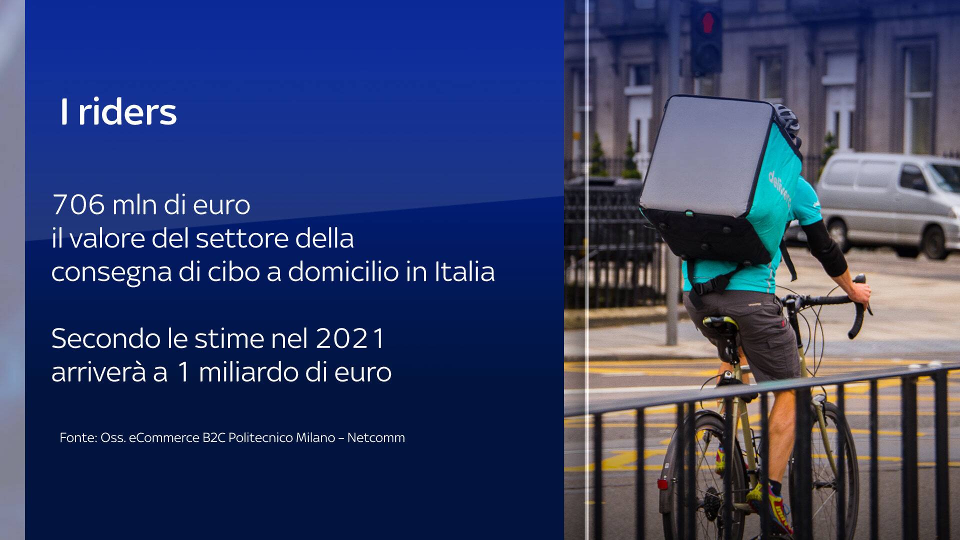 Quello della consegna di cibo a domicilio è un settore in forte crescita (e ancora di più durante la pandemia) che vale oltre 700 milioni di euro (due miliardi e mezzo se si considera anche la spesa e non solo i piatti pronti). E secondo le stime il giro d'affari raggiungerà nel 2021 il miliardo di euro. Secondo Coldiretti se ne servono quasi 4 italiani su 10.